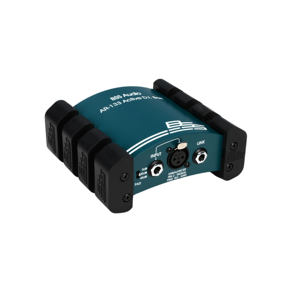 The AR-133 from BSS is an active direct box that can also function as an active balancing device. The DI is housed in a rugged aluminum extrusion case with robust polyurethane end-cheeks. The arched case allows cables to run back underneath the unit from the end for neat cable management.
