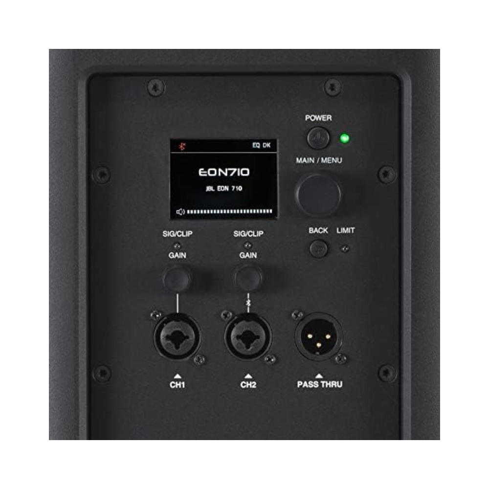 The EON710’s advanced DSP package provides comprehensive control over EQ, limiters, delay, dbx Automatic Feedback Suppression, ducking and other functions. Access settings on-speaker using an integrated backlit LCD screen, or from anywhere in the venue using the JBL Pro Connect App. Built-in Bluetooth audio streaming and control take advantage of the newest protocol’s security features, low latency, broad range and improved audio fidelity. Set up TWS (True Wireless Stereo) Bluetooth streaming using a free firmware update available in the JBL Pro Connect app.